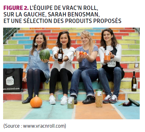 Convaincue par la démarche zéro déchet, Sarah Benosman [Figure 2] a fondé Vrac’n Roll en avril 2016 à Lyon en partant de sa propre expérience : « Je n’arrivais pas à me mettre au vrac, je trou-vais que les magasins ne faisaient rien pour le faciliter, ça prend trop de temps. Quand vous achetez quelque chose, il n’y a pas d’étiquette, il y des problèmes d’hygiène… » (Benosman, 2018).
