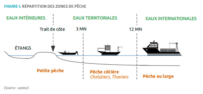 De ce fait, la pêche pratiquée doit être en concordance avec cette situation. C’est la caractéristique de la « petite pêche », aussi appelée « pêche artisanale », s’opposant aux « grandes pêches » ou « pêches industrielles » au large. C’est la pêche historiquement pratiquée dans les étangs et généralement à moins de 3 MN ). Les différents rayons d’action pour distinguer les activités de pêche sont explicités en figure 1. En Méditerranée, une gestion des ressources considérée comme durable, responsable et adaptée met alors en œuvre une importante diversité de régulations territorialisées :