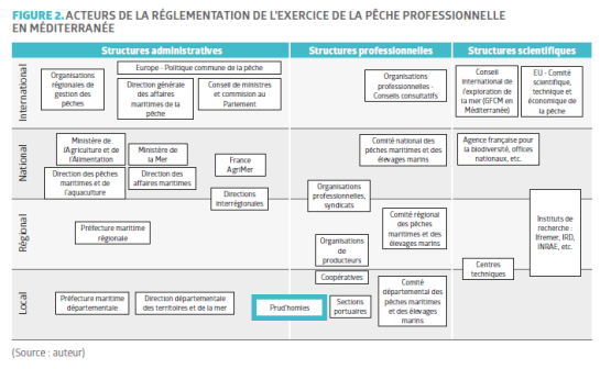 L’état de surexploitation des ressources halieutiques en Méditerranée demande la mise en place d’une gestion des pêches cohérente, holistique, durable et territoriale qui doit impliquer les nombreux acteurs administratifs, scientifiques et les professionnels de la filière (Figure 2). Ainsi, le fonctionnement en « vase clos », uniquement entre pêcheurs professionnels, s’oppose aux principes d’une gouvernance multi-acteurs et est à questionner pour la gestion durable des ressources côtières.