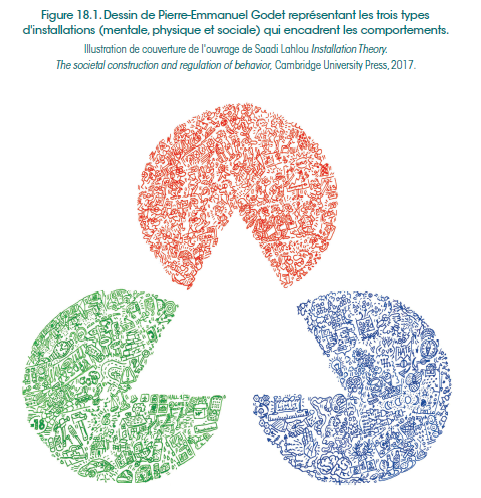En psychosociologie, plusieurs décennies de recherche, notamment synthétisées par Saadi Lahlou (2018) dans sa théorie des installations, conduisent à un modèle similaire. Celui-ci appréhende la liberté des choix individuels comme étant encadrée par trois types d’« installations », de nature mentale, physique et sociale (figure 18.1).