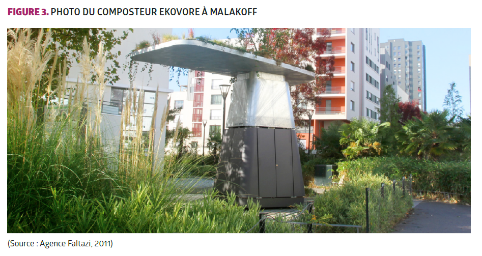Le design du composteur Ekovore permet de faciliter les bonnes pratiques, de les rendre plus attrayantes et ludiques. La visibilité du composteur, son design travaillé peuvent donner envie aux habitants de s’impliquer pour un mode de vie plus durable et donne à l’écologie un visage de modernité [Figure 3].