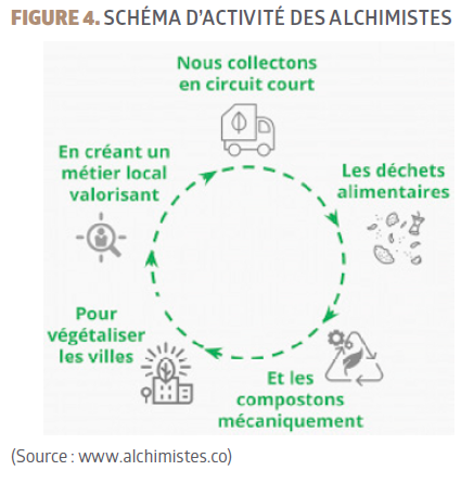 La contrainte réglementaire représente un obstacle considérable et oblige à adapter l’organisation et les matériaux afin de permettre à un tel service de voir le jour au cœur d’une métropole. C’est donc avec habileté que les Alchimistes sont parvenus à adapter leur organisation aux cadres réglementaires relatifs à cette activité et aux contraintes liées au contexte urbain. Trois sites de trans-formation de déchets alimentaires en compost ont finalement pris place au sein de Paris, alors même que ces services étaient définitivement extraits de nos villes. Ainsi et à travers une vraie relocalisation, l’entreprise souligne sa logique environnementale.