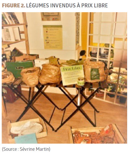 → « Alimentation » : des potagers partagés (PoPart) destinés aux étudiant.e.s, gratuits et en libres accès ; des « SSU [1] pers paniers » consistant en des commandes et réceptions de paniers de légumes (de saison, à 6 ou 10 €), une semaine à l’avance, auprès de l’épicerie Max et Lucie qui s’approvisionne auprès de petits agriculteurs locaux, avec six points de livraisons différents ; des ateliers de cuisine ; une cuisine équipée ouverte ; des cagettes de fruits et légumes invendus distribuées par le magasin Bio « l’Eau vive » et l’association « Tous au verger » qui récupère les fruits de vergers inexploités. Des buffets ou apéritifs peuvent être préparés lors d’ateliers de cuisine, pour lesquels les invendus (Figure 2) sont utilisés comme matières premières et transformés en mets appétissants et savoureux. Ces préparations peuvent être servies et vendues lors d’événements. Les contributions des adhérents aux buffets et apéritifs participent à l’auto-financement de l’association.