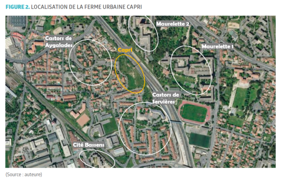 Depuis 2018, la Cité de l’agriculture œuvre sur le projet de la ferme urbaine Capri. Ce projet pilote de recherche-action se veut à dominante productive, par la vente de fruits et légumes, avec une volonté d’ouverture aux habitants en s’intégrant au contexte socioéconomique du territoire. Les ambitions de la ferme évoluent et sont présentées aujourd’hui par son coordinateur en quatre volets : (1) produire des aliments frais et sains dans des quartiers qui en manquent souvent, (2) accueillir du public dans un lieu ouvert et agréable, (3) sensibiliser et former, (4) étudier, expérimenter, essaimer (Turbet Delof, 2021). La Cité de l’agriculture souhaite faire ressortir des indicateurs sur l’agriculture urbaine, et fournir des méthodes et des pratiques qui soient reproductibles par d’autres porteurs de projet dans Marseille ou ailleurs.