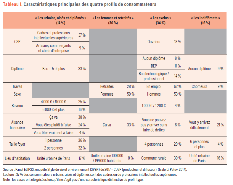 … aux caractéristiques socioéconomiques différentes de celles des autres profils de consommateurs