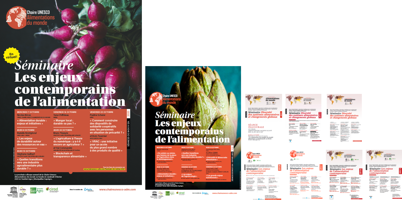 Since 2012, as part of the Advanced Master’s® program, Innovations and Policies for Sustainable Food, offered by l’Institut Agro Montpellier and CIRAD, the Chair organizes a training seminar open to all on contemporary food issues in October. The sessions, which are streamed online, can be followed without coming to Montpellier.