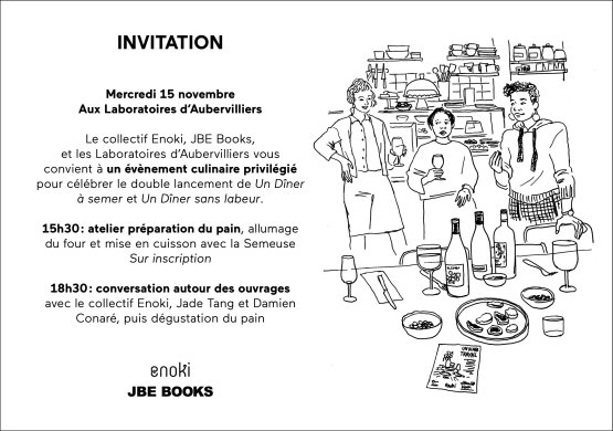 Le collectif Enoki, JBE Books et les Laboratoires d’Aubervilliers vous convient à un événement culinaire privilégié pour célébrer le lancement de Un dîner sans labeur, réalisé en partenariat avec la Chaire Unesco alimentations du monde.