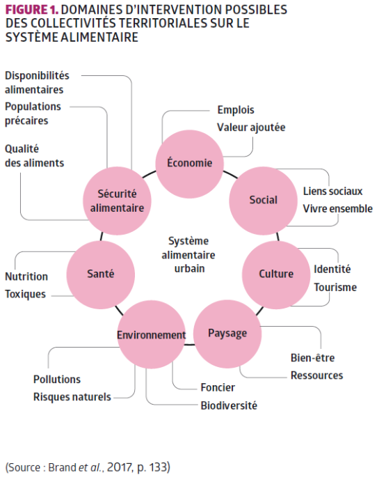 De nombreuses expériences montrent que les villes disposent de leviers d’action pour améliorer la durabilité des systèmes alimentaires (Debru et al., 2017 ; Forster et al., 2015). Les gouvernements urbains peuvent agir sur l’aménagement des zones commerciales, sur le système de distribution alimentaire et sur l’accès au foncier. Par ailleurs, ils peuvent gérer les approvisionnements alimentaires du secteur de la restauration collective et hors foyer, privilégiant ainsi certains modes de production et de consommation. Finalement, face à la distanciation (géographique, économique et cognitive) qui s’est amplifiée entre les habitants de la ville et ceux des zones rurales, les villes peuvent favoriser l’essor de nouvelles formes de connexion à travers, par exemple, la création de marchés paysans et la relocalisation des approvisionnements alimentaires (Brand et al., 2017 ; Debru et al., 2017).