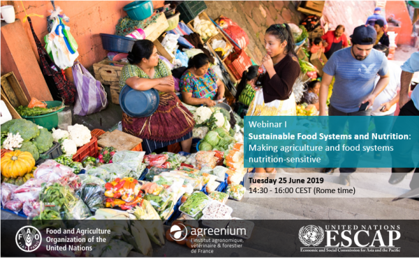 La FAO (the Food and Agriculture Organization of the United Nations) en partenariat avec UN-ESCAP (United Nations Economic and Social Commission for Asia and the Pacific) et Agreenium (l’Institut agronomique, vétérinaire et forestier de France) vous propose un webinar sur "Sustainable Food Systems and Nutrition : Making Agriculture and Food Systems Nutrition-Sensitive".