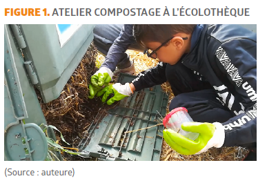 L’Écolothèque est une ferme pédagogique et un centre de ressources « nature et environnement » qui existe depuis 1987 et dépend aujourd’hui de Montpellier Méditerranée Métropole, en partenariat avec le rectorat de l’académie de Montpellier. Elle propose aux écoles différents types d’interventions, dans une démarche d’éducation au développement durable (EDD) : visite libre, accueil d’une classe sur une journée ou, dans le cadre d’un projet construit avec l’enseignant, accueil sur deux à trois journées, voire une « classe à la semaine ». Parmi les activités proposées, beau-coup concernent la chaîne alimentaire : jardinage, ateliers sur le goût, reconnaissance des différents fruits et légumes, origine des plantes alimentaires (quelle partie de la plante mange-t-on ?), cuisine à partir des produits du potager, dégustation de différents produits biologiques du domaine agricole, mise en place de techniques agroécologiques, compostage.