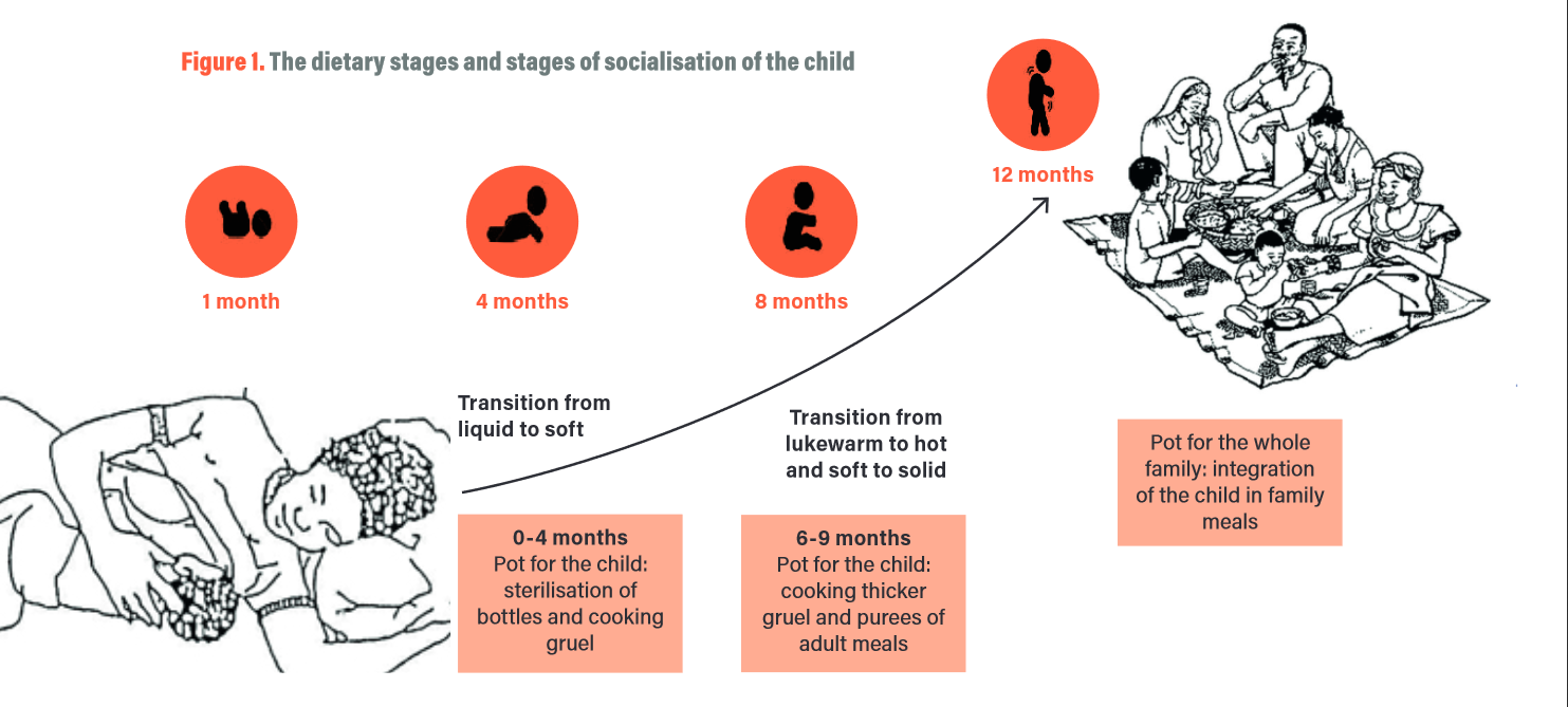 (including the products and utensils used) of children are determined more by their social age than their biological age. Feeding is at the heart of the integration of the young child, and must also allow it to learn the dietary repertoire of its group. It must therefore be ensured that feeding training programs aimed at the mothers do not make reference solely to the biological age of the child, but also to its social age.