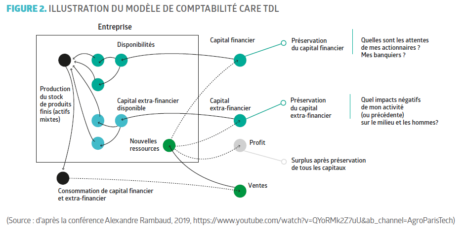 La méthode CARE TDL est un modèle de comptabilité conçu par Jacques Richard en 2012, qui a fait l’objet d’une publication scientifique en 2015 co-signée par Alexandre Rambaud. Elle associe mesure de performance et objectifs de préservation pour « compter ce qui compte afin de préserver ce qui est capital » (Rambaud et Richard, 2015).
