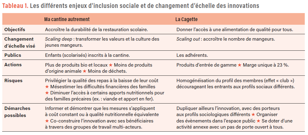 – La capacité à changer d’échelle, autrement dit à concerner un nombre croissant de mangeurs, est intimement liée à la façon dont les innovations traitent l’inclusion sociale. Ces dernières se heurtent à divers écueils et peuvent reproduire malgré elles des schémas excluants.