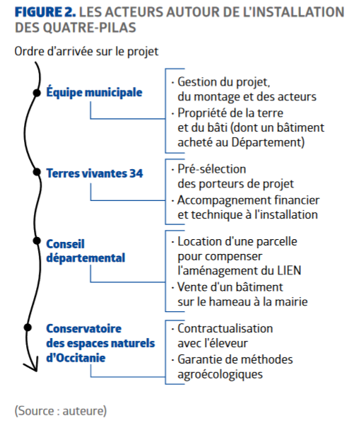 À l’origine, la mairie, qui possède les 38 hectares décrits plus haut, entre en contact avec Terres vivantes 34, une association d’aide à l’installation orientée vers des projets d’agriculture diversifiée et paysanne. Celle-ci est bien connue des acteurs du monde agricole et de la maire du village, qui est aussi vice-présidente de la Métropole en charge des sujets de transition agroécologique.